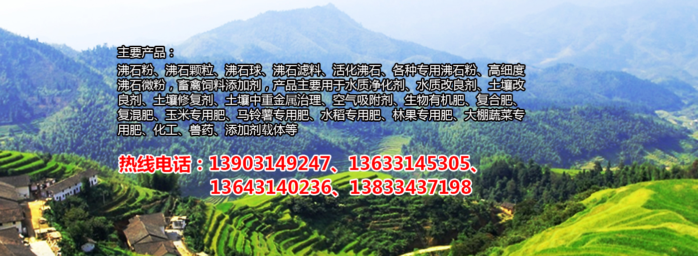 主要產(chǎn)品:沸石粉、沸石顆粒、沸石球、沸石濾料、活化沸石、各種專用沸石粉、高細(xì)度沸石微粉,畜禽飼料添加劑,產(chǎn)品主要用于水質(zhì)凈化劑、水質(zhì)改良劑、土壤改良劑、土壤修復(fù)劑、土壤中重金屬治理、空氣吸附劑、生物有機(jī)肥、復(fù)合肥、復(fù)混肥、玉米專用肥、馬鈴薯專用肥、水稻專用肥、林果專用肥、大棚蔬菜專用肥、化工、獸藥、添加劑載體等。